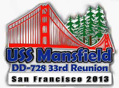 September 11-14, 2013 for the USS Mansfield 33rd Reunion in San Francisco, California