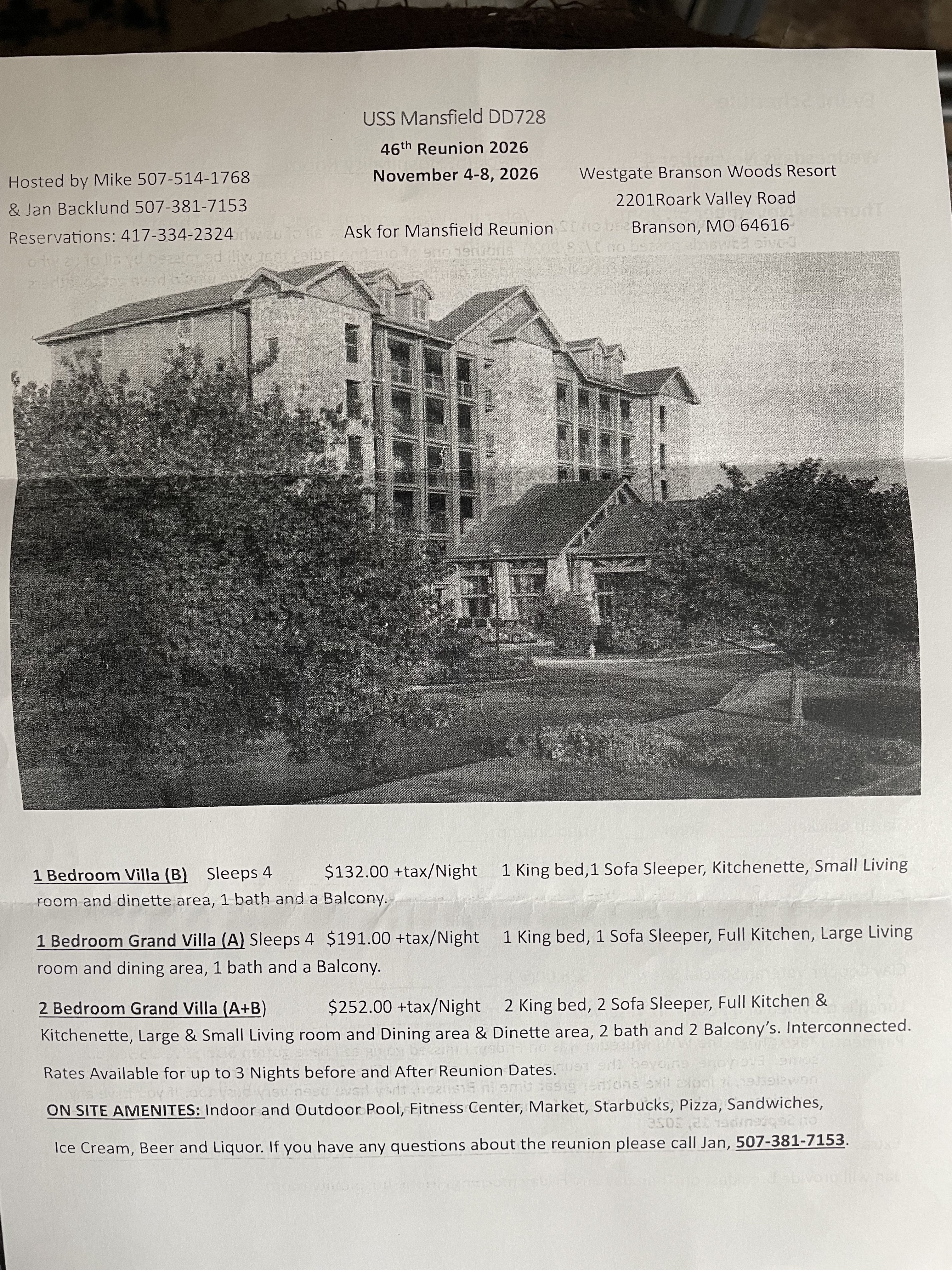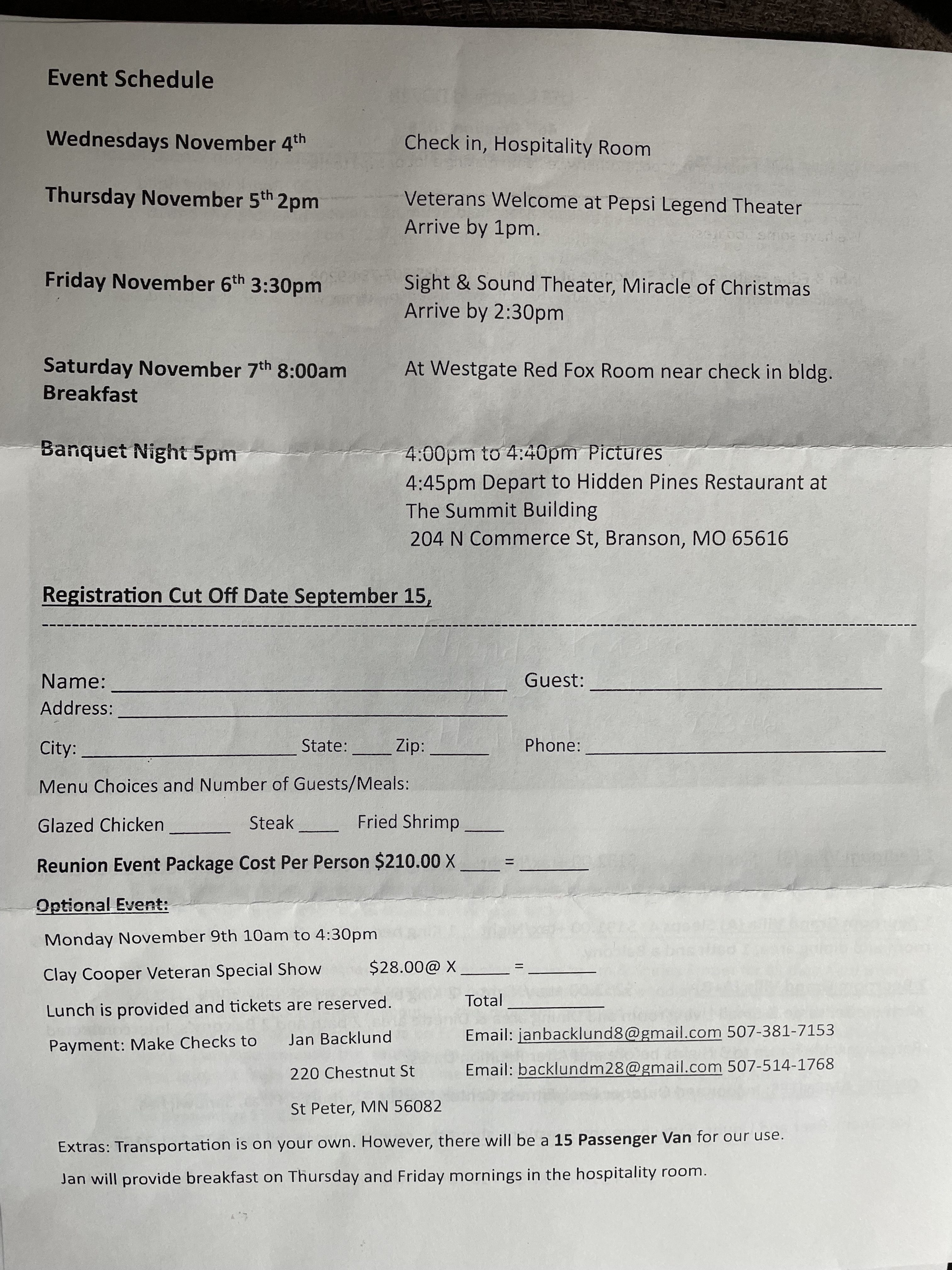 - Payment(s) for Planned Activities are mailed directly to the reunion coordinator.