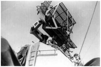 Previous ImageNext Image rbow4 Mansfield’s 5″ Main Battery Fire Control L to R: C. Warner GMSN, Charles Clark FC3 and gunnery officer LTjg Hugh Reynolds. (Clark retired from the navy as Chief FC)